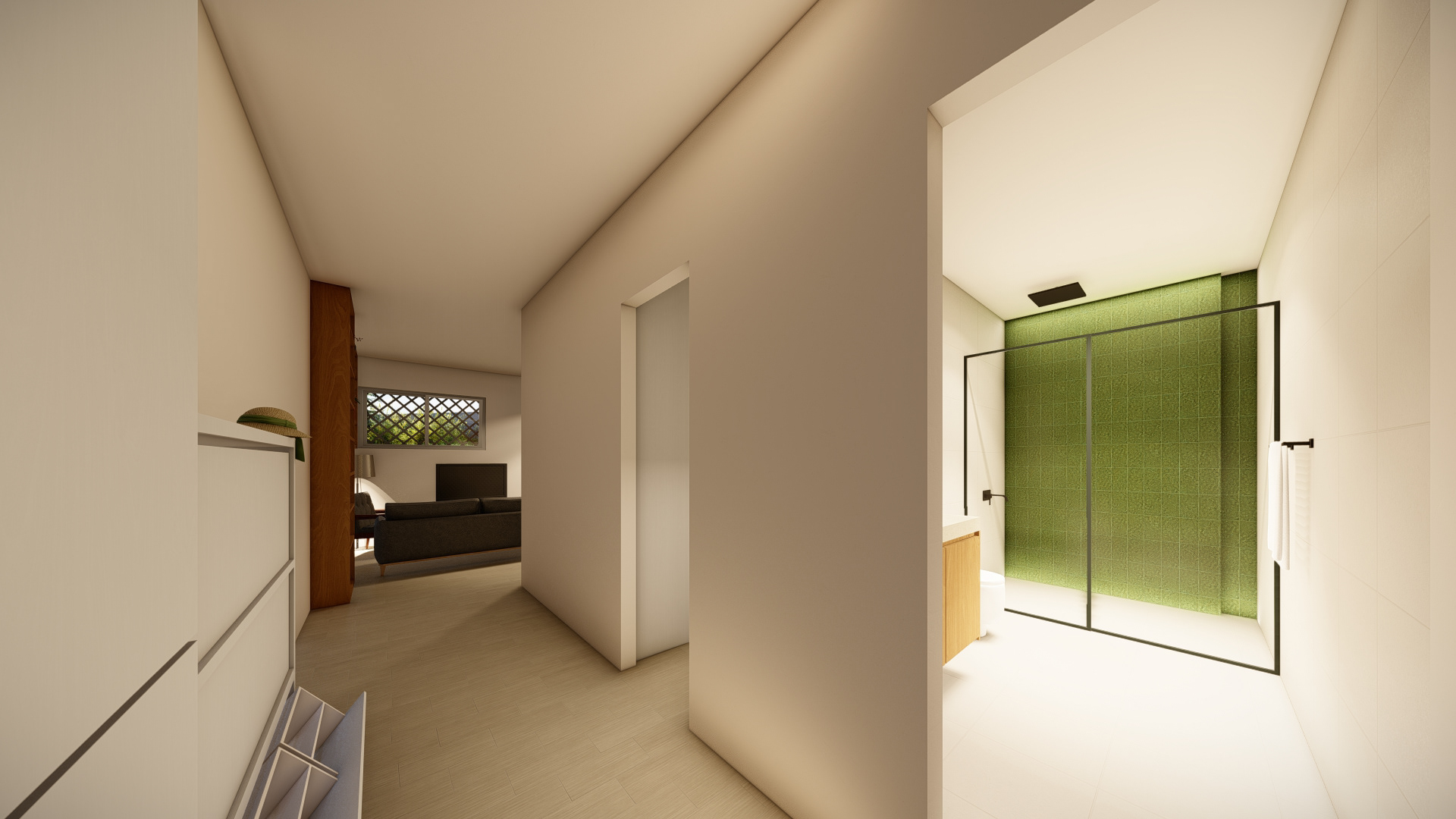 The goal of this renovation was to seamlessly blend modern aesthetics with functional design. The use of neutral color palettes contributed in creating a feeling of comfort in an otherwise small space. One of the biggest challenges was to sufficiently light up the living room/kitchen given its limited openings. By applying the latest techniques using state-of-the-art reflective materials, the apartment is hit with sunlight throughout the whole day. Clever storage solutions were also integrated to optimize space efficiency without compromising on style.