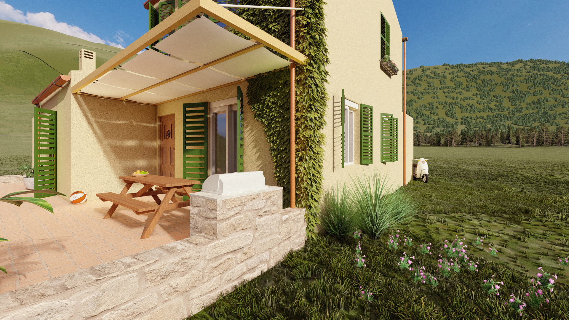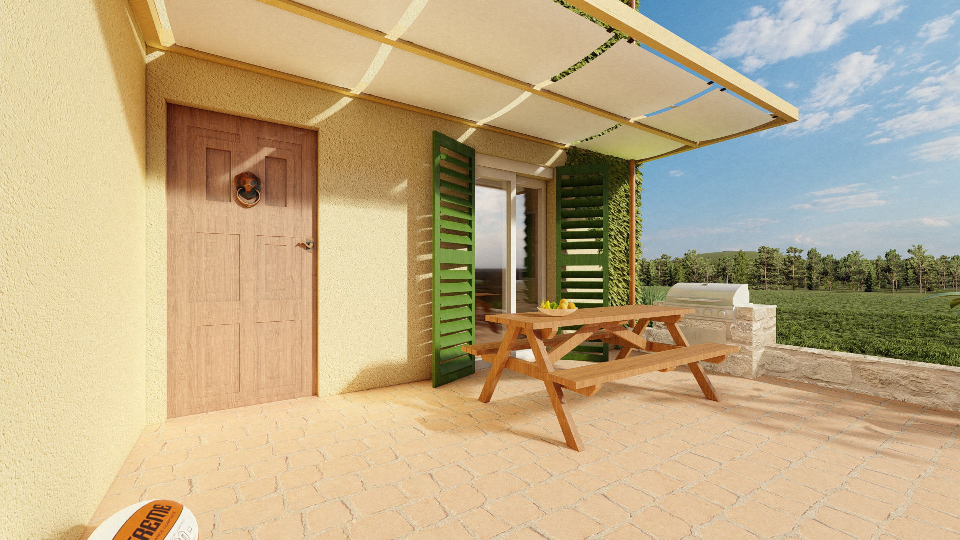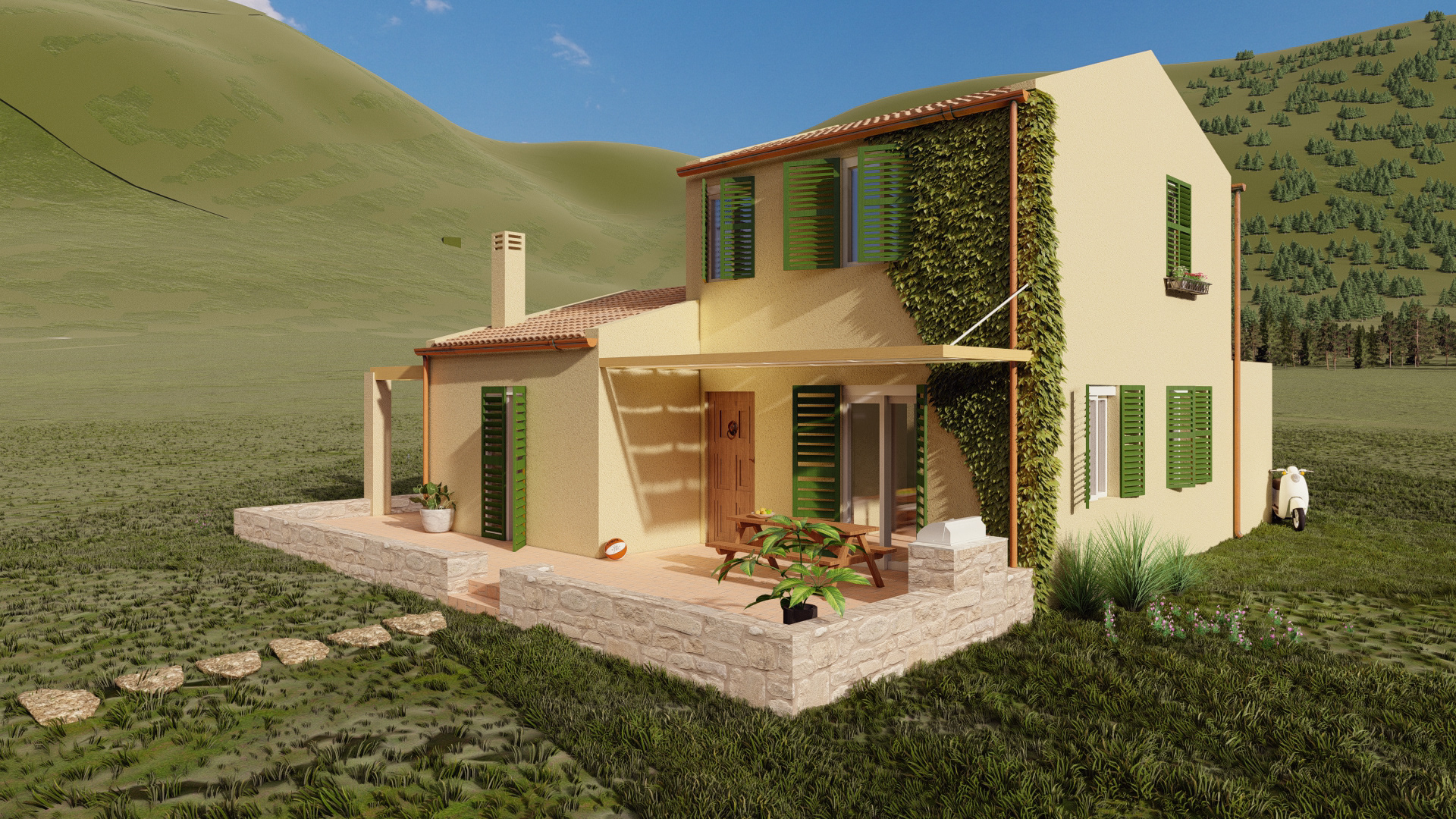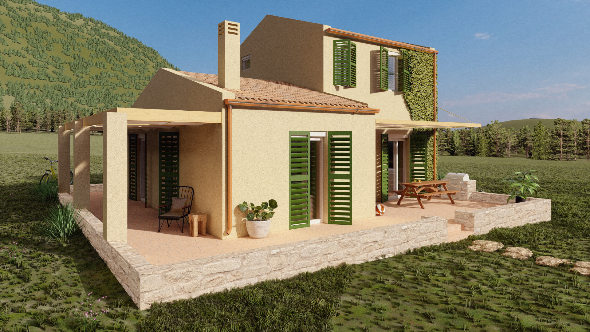 Proposal for a country home, nestled in the picturesque countryside of Corfu. Designed with a classic and timeless approach, this residence embodies the essence of a traditional Corfiot country home. The warm color palette, complemented by the signature dark green shutters, reflects the iconic aesthetic of the island. Every detail is thoughtfully crafted to evoke the rich heritage and natural beauty of Corfu, offering a harmonious blend of elegance and comfort.