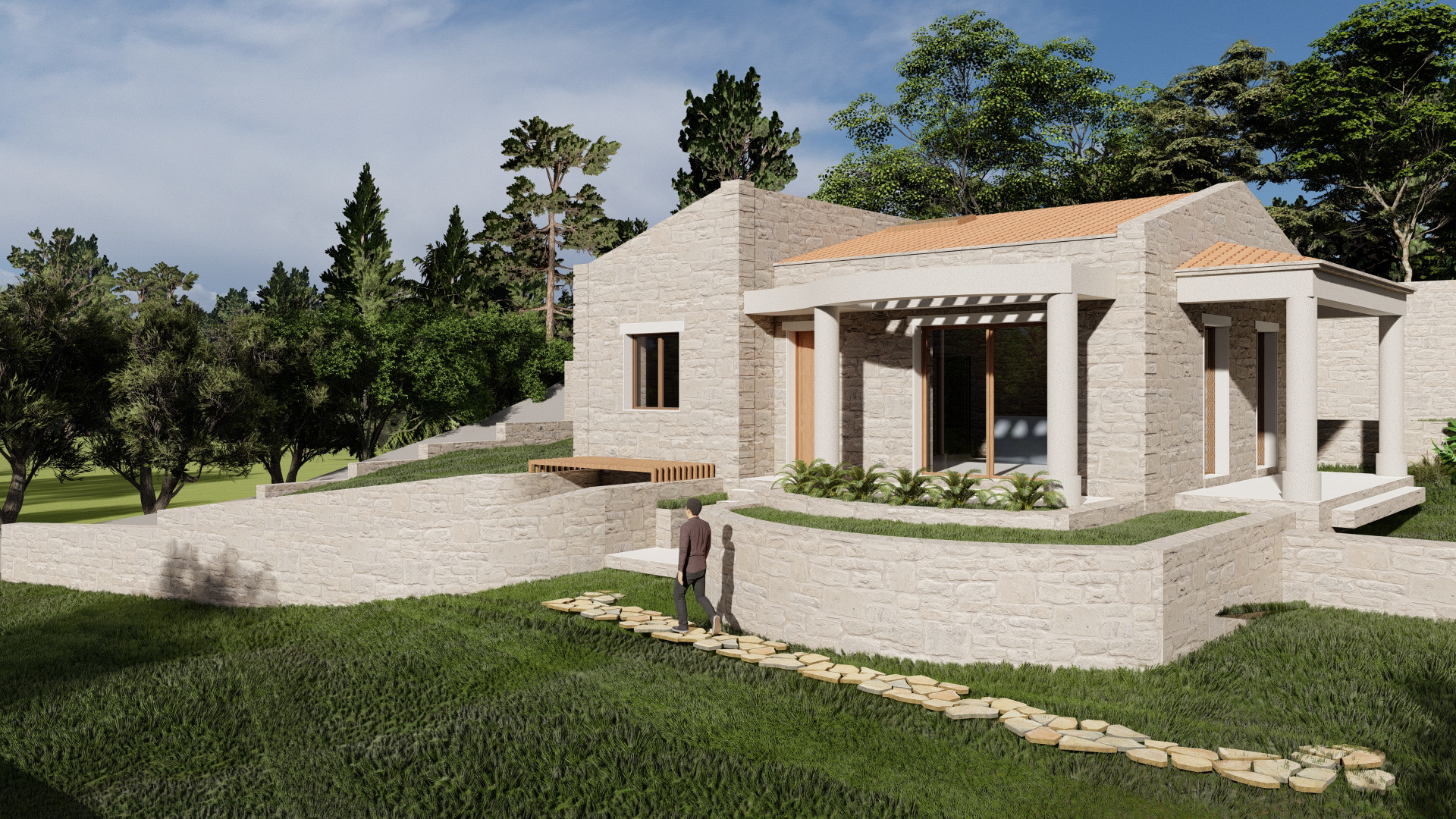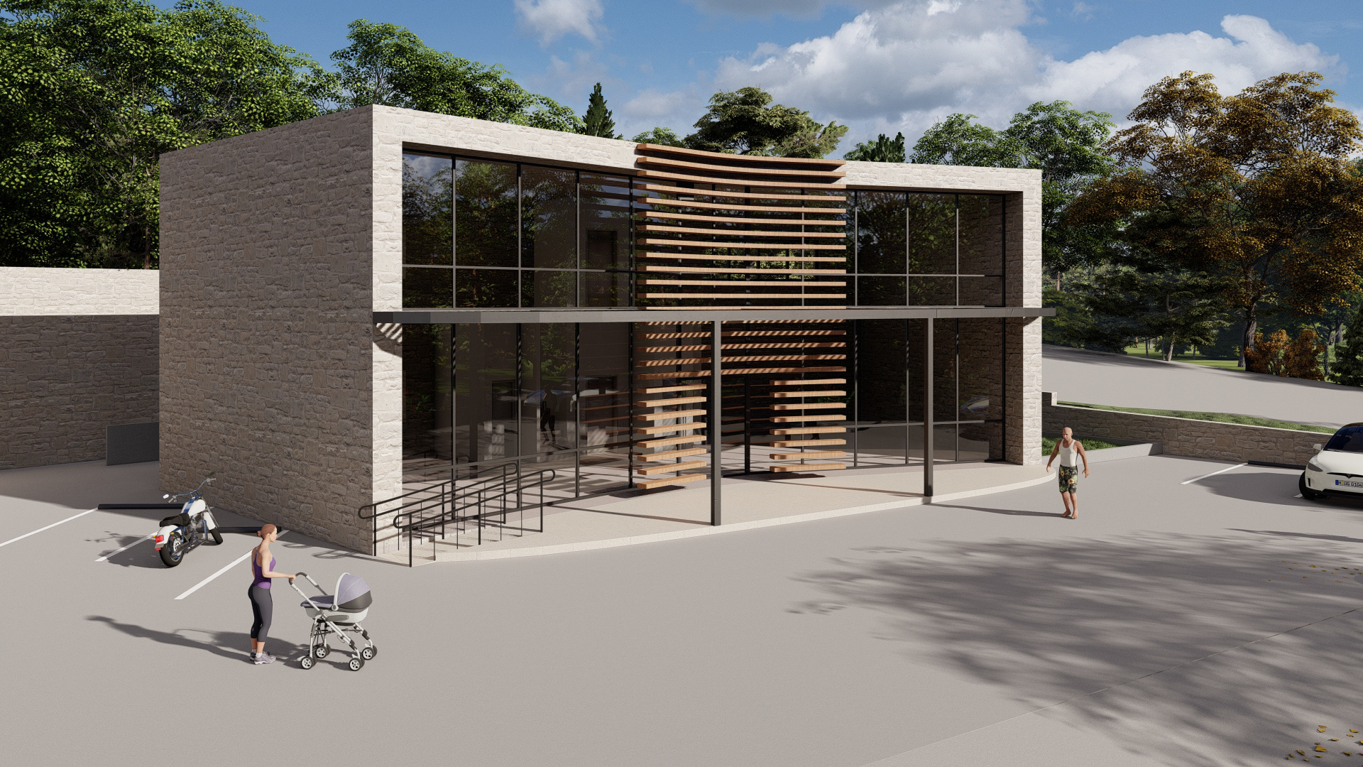 This project involves the design of two buildings in Agios Ioannis, Corfu: a two-story retail space with a basement and a single-story office building with a basement. The architectural approach balances modern and traditional elements through clean geometric forms, natural materials, and functional design. Stone facades, large windows, and metal pergolas enhance aesthetics while ensuring energy efficiency and harmony with the landscape. Thoughtful integration of accessibility features, landscaped areas, and parking further supports usability. Despite their distinct characters, the two buildings are unified by simplicity, timelessness, and a seamless connection to their natural surroundings.