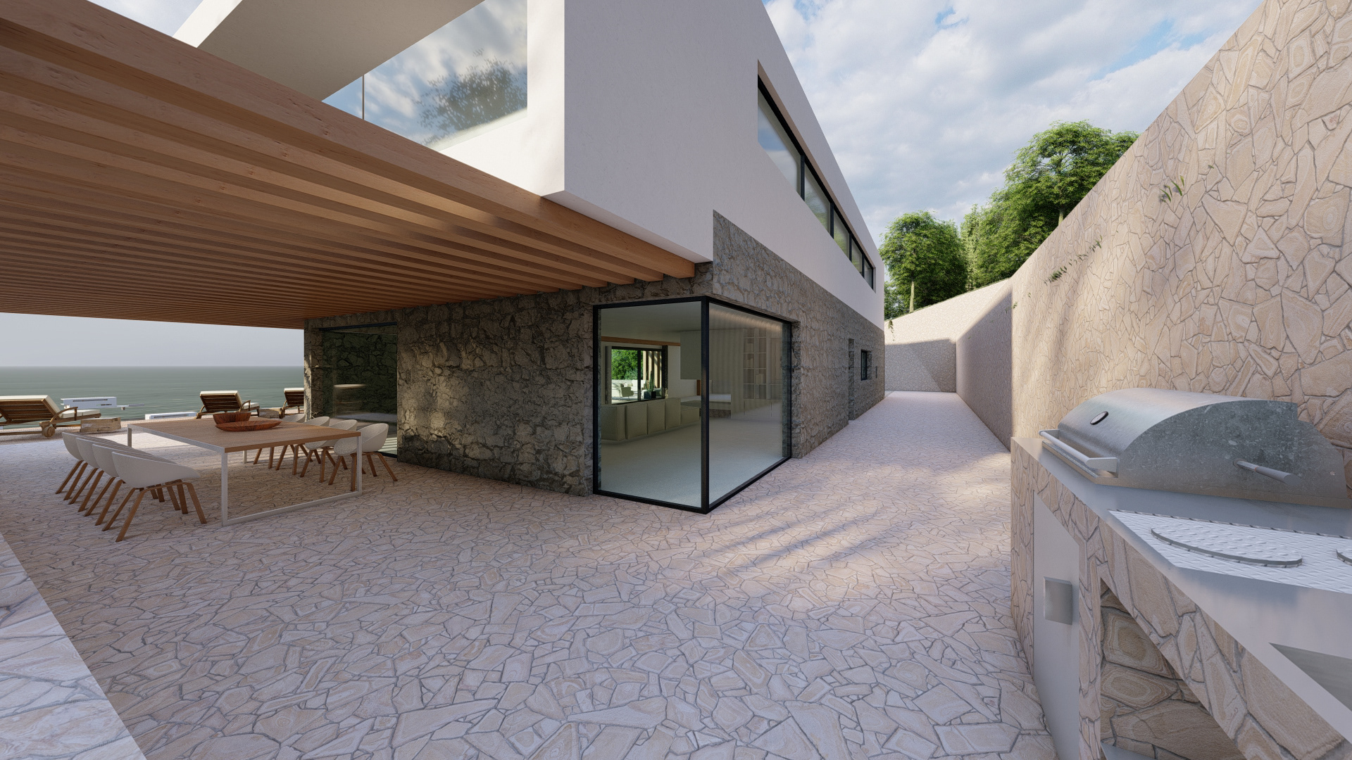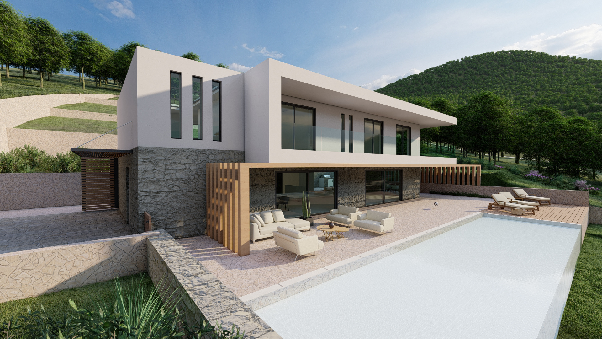 A serene villa nestled in the heart of Corfu’s southern countryside. Embracing the natural beauty of its surroundings, this villa features an elegant use of stone and earthy tones, seamlessly co-existing with the landscape. The minimalist design emphasizes clean lines and open spaces, creating a harmonious balance between luxury and nature. The stunning infinity pool slong with the spacious outdoor area, offer breathtaking views and a perfect retreat for relaxation.